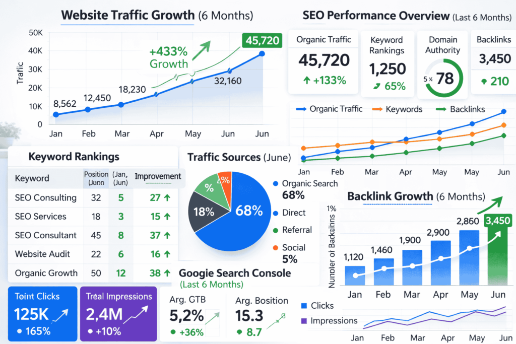 SEO consulting is a specialized service where an expert analyzes a website’s search performance and creates a strategic roadmap to improve its visibility in search engines like Google, Bing, and AI-driven platforms like ChatGpt.